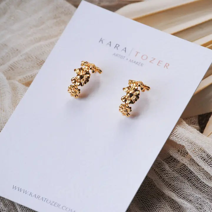 Gold Floral Hoop Earrings